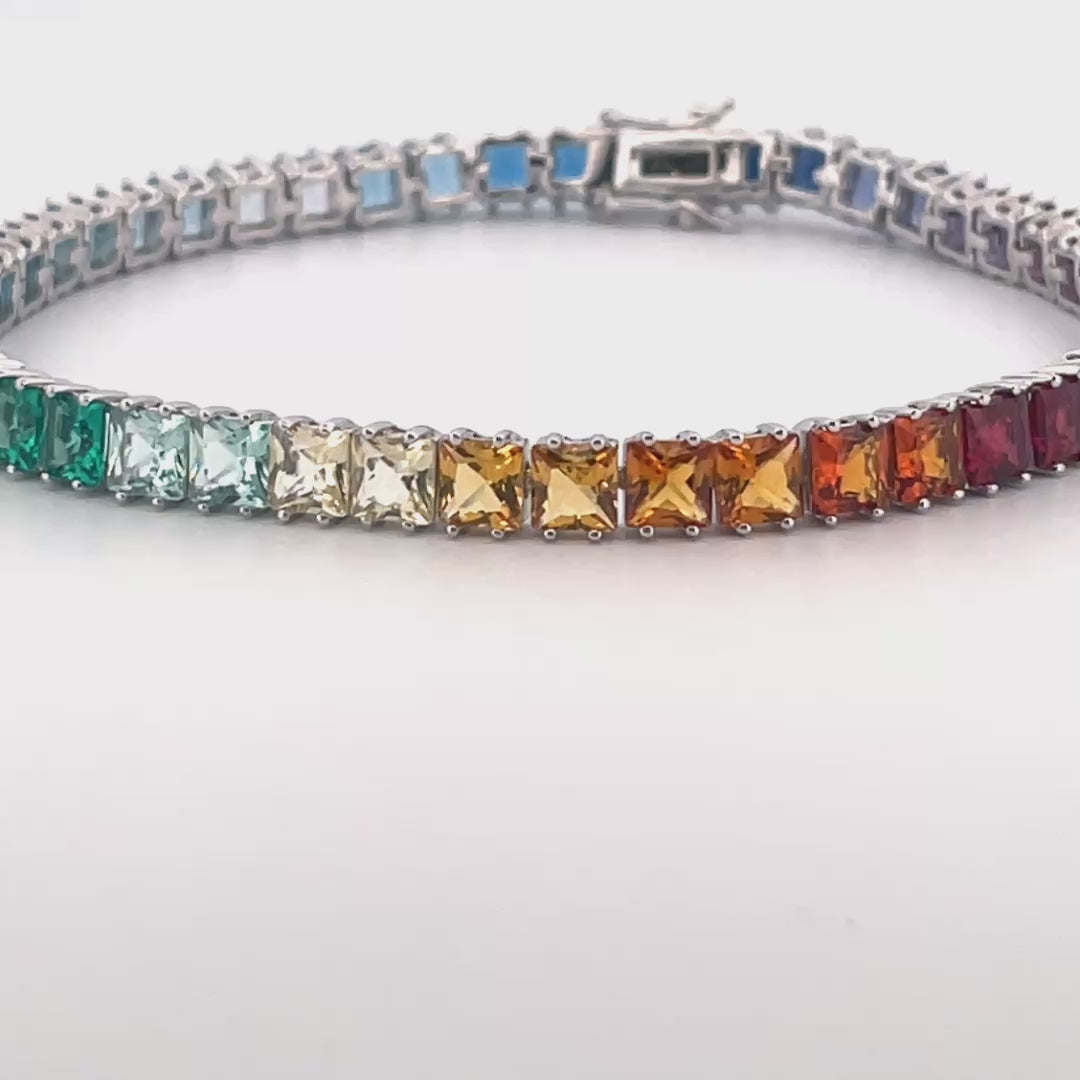 Silver square cut multi colour c.z rainbow bracelet 7.5inches