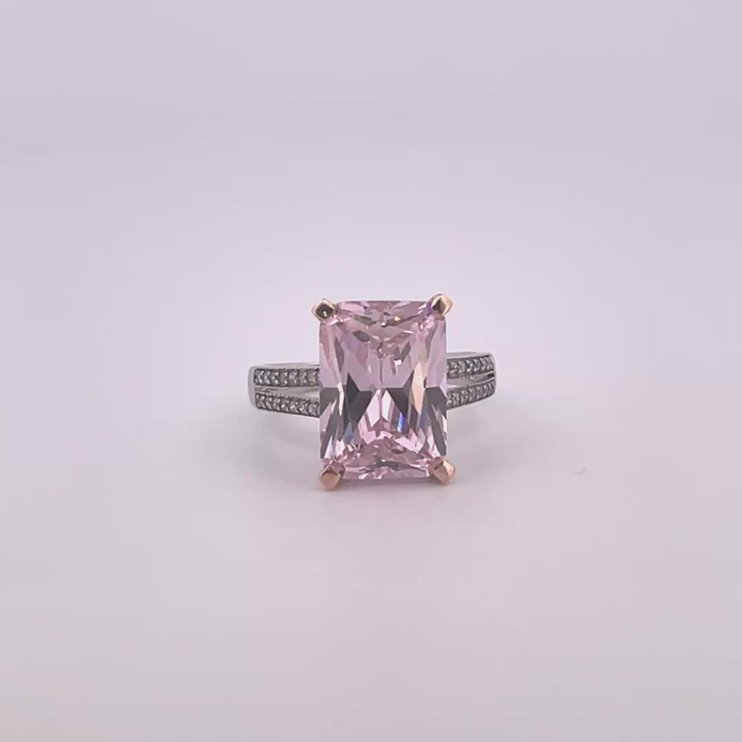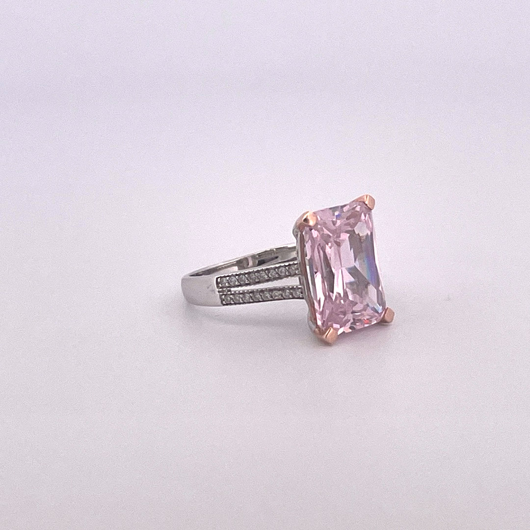 Silver pink c.z ring with c.z set split shoulders